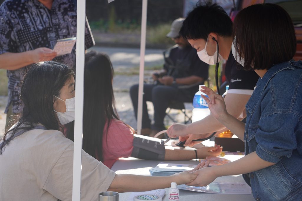 9/28(日)、中央台鹿島で開催されました「ぷろばんす56朝市」へ健康ブースとして出店し、当院の総合診療科の専攻医やいとちスタッフが参加し、来場者に向けて血圧測定や健康相談、ハンドマッサージを行いました
